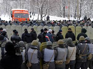 Ретивость служителей правопорядка можно объяснить двумя причинами. Во-первых, внезапно разыгралась метель, поэтому и милиция, и "толпа", которую тоже изображали милиционеры, активнее двигались. Во-вторых, силы были явно не равны: вместо расчетных пятисот митингующих на рельсы встали от силы восемь десятков. И это на 1000 сотрудников милиции!