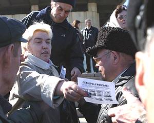 Среди обычного для подобных мероприятий народа привлекала к себе внимание группа молодых людей - коротко стриженные, хотя далеко не борцовской комплекции, парни и симпатичные, аккуратно и ярко одетые девушки. И вот наступил момент, ради которого они пришли. Один из них - парень по имени Олег Кузнецов - обратился к митингу. Он сказал, что они - члены Национал-большевистской партии, "лимоновцы", и просят поддержать их обращение к российской власти. Обращение было простое: свободу политзаключенным.