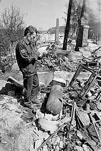 Вор хоть что-то оставит, а огонь все пожрал, причитали женщины, пытаясь найти что- нибудь на пепелище своих дач. В огне уцелели только гвозди. В эпицентре пожара температура воздуха была такой, что от дюралюминиевых лодок остались лишь лужи металла, от деревянных дач - только фундамент, заваленный стальными листами кровли, от кирпичных - голые стены, покрытые трещинами в палец толщиной.