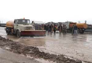 | Зря дорожники старались - чистили въезд в село Богородское. Министр транспорта РФ проехал мимо. | Встреча с дорожниками должна была состояться у въезда в село Богородское Пестречинского района, где проходит федеральная автотрасса Казань - Набережные Челны. Но планы министра изменились: когда он прилетел, дорогу из Международного аэропорта "Казань" перекрыли в связи с отъездом Владимира Путина. И Игорь Левитин вместе с встречавшей его делегацией просидел в аэропорту, пока не улетел российский президент. Чтобы сэкономить время, министра повезли сразу в Шали, где ему показали небольшой участок недостроенной платной дороги.