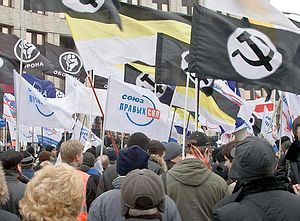 Каспаров и Лимонов идут не спеша, на ходу отвечая на вопросы журналистов. Вдруг впереди, у пересечения проспекта с Садовым кольцом, раздался хлопающий звук и показался дым - это молодые "лимоновцы", задержанные ОМОНом, пустили сигнальную ракету. Каспаров почти бегом кидается туда, мы бежим следом, и милиция нас пропускает. Какая-то женщина, трогая офицера милиции за рукав, тихо говорит ему: "Голосуйте против Путина!". "Нам без разницы", - так же тихо отвечает тот.